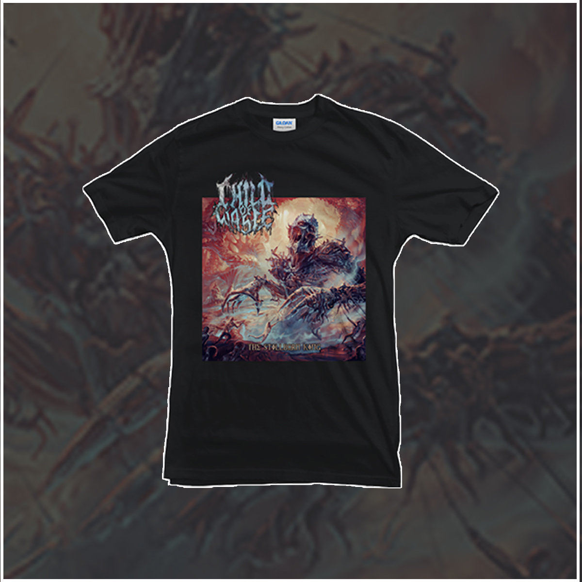 Black GILDAN t-shirt with The Stillborn King artwork four-color.
